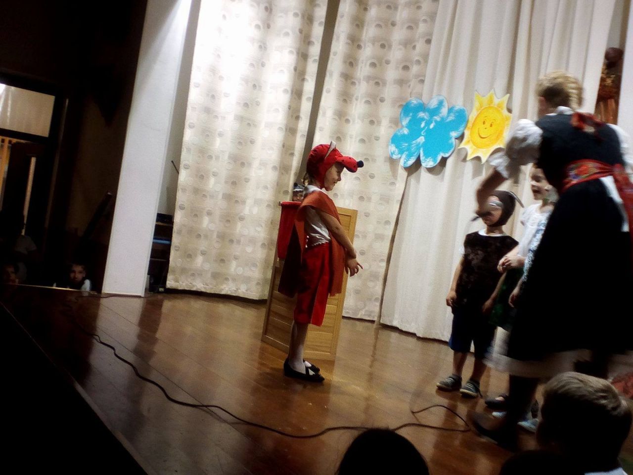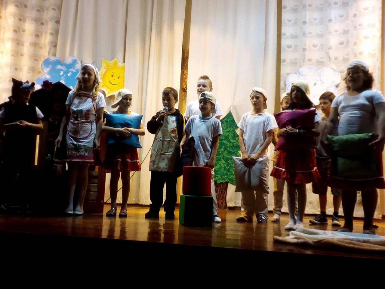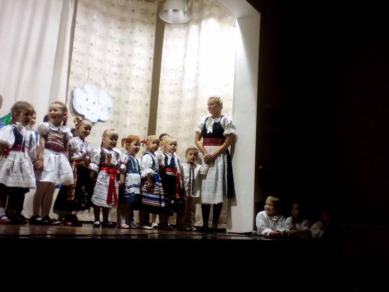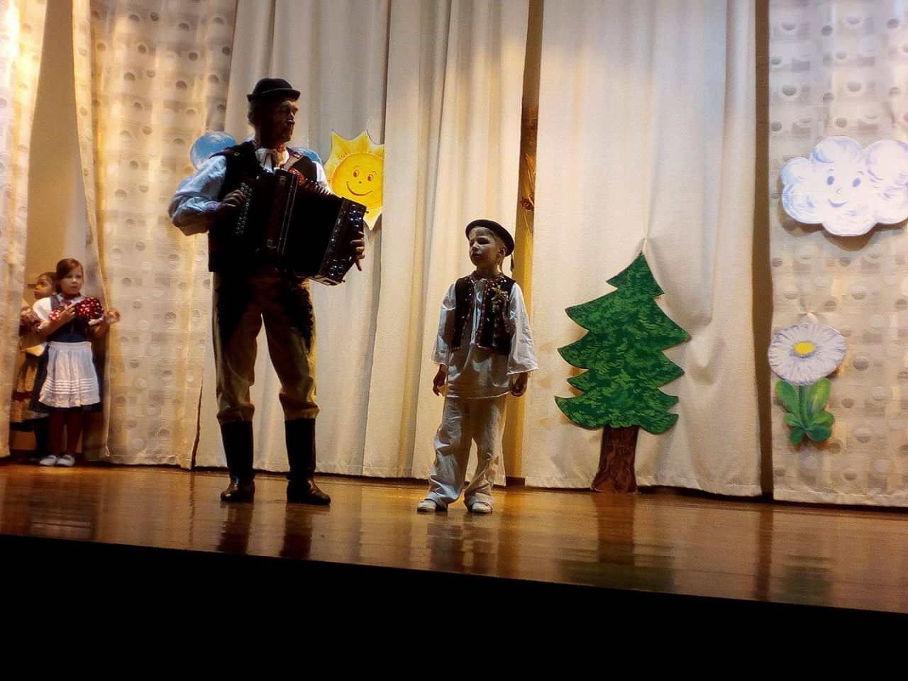Školáci si tiež pripravili divadielko – dramatizáciu rozprávky „O nepodarených kozliatkach“ a dievčence Hanka a Terka zarecitovali báseň „Kvety pre mamu“ a program základnej školy ukončil Róbert Hošták hrou na husle.